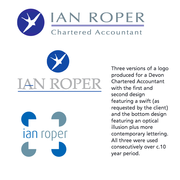 This ambitious Devon Chartered Account has always been commercially aware of the image he projects. From a simple logo formed from a swift illustration for his first letterhead he progressed over the years to a striking abstract optical illusion, always using muted yet strong colours and clear typography. His sister business (oneplusone) also needed a strong logo and the logo above has a high visibility factor and colours chosen for their dynamic effect.