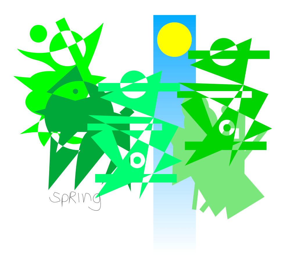 Using the unique font Abstract 1950, this composition in bright vivid colours represents the Spring Season and also spells out an apposite word also reflecting it.