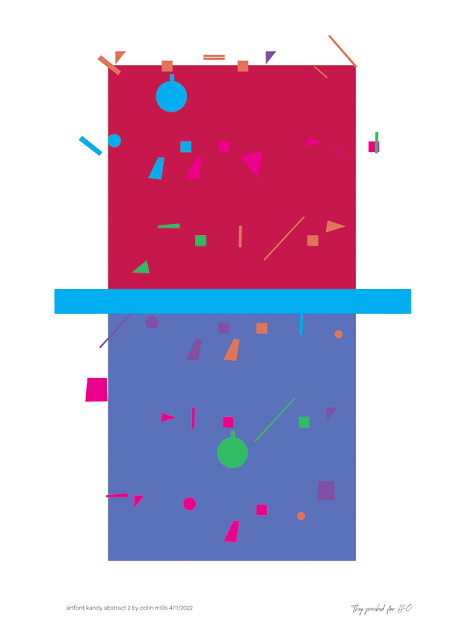 An outrageous unconventional font that produces extreme abstract art with loose influences of Kandinsky, Paul Klee, and Miro.
