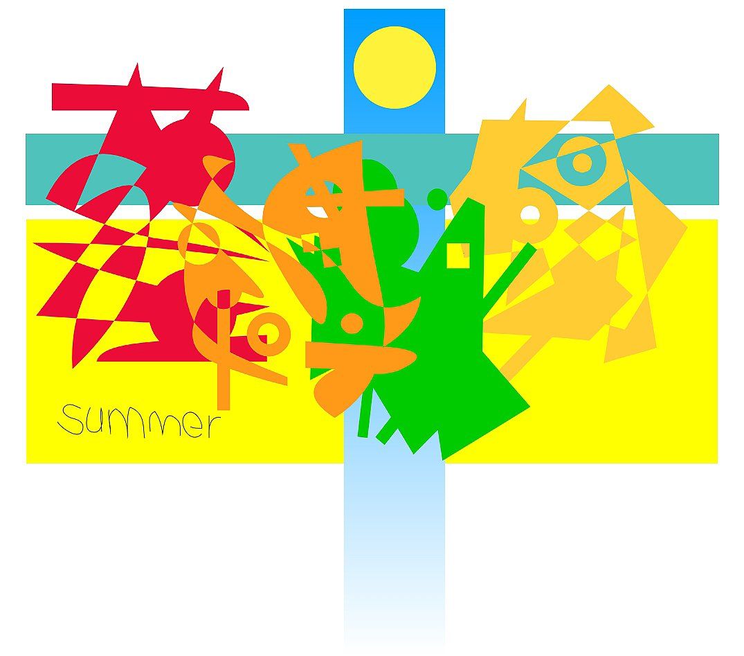 Using the unique font Abstract 1950, this composition in hot colours represents the Summer Season and also spells out an apposite word reflecting this Season.